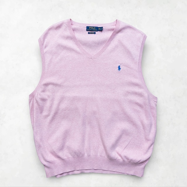 >> Vibe Check 「春を溶かし込んだ、ベビーピンクの衝撃。XXLサイズが描く、新しいプレッピーの輪郭。」 ラルフローレンの春の定番、ピーマコットンシリーズから、一際目を引くベビーピンクの個体が登場です。上品なイメージの強いニットベストを、あえてXXLという特大サイズで。この「色」と「サイズ感」のギャップこそが、今のストリートに最も必要なエッセンスです。 >> Item Details Brand: Polo Ralph Lauren Era: 00s - 10s Archive Point: カシミアのような肌触りを誇る「ピーマコットン」を100%使用。淡いピンクのボディに、鮮やかなブルーのポニー刺繍が映える計算されたカラーバランス。Vネックの開きを活かして、フーディの上からガサッと重ねるような自由な着こなしを楽しんでほしい一着です。 >> Size & Fit (平置き実寸) 「身幅68cmという規格外のボリューム。着丈71cmとのバランスも完璧で、肩が大きく落ちるドロップシルエットを自然に構築します。特大サイズならではの生地の溜まりが、単なるベストの枠を超えた存在感を放ちます。」 着丈: 71 cm 身幅: 68 cm ※ベストのため、肩幅・袖丈は計測しておりません Fitting: 180cm以上(ゆったりとした本来のビッグスタイル) / 170cm 〜 175cm(圧倒的なオーバーサイズを楽しむストリートスタイル) 【サイズ感の個別相談を承ります】 「自分の体型に合うか不安」「AI着画(Visualizer)とのギャップを確認したい」という方は、**InstagramのDM( @whatever_usedclothes )**までお気軽にご連絡ください。 以下の3点を送っていただければ、店主が一点一点、実寸と照らし合わせて回答します。 ・検討中のアイテム名 ・身長 / 体重 ・お悩み(例:肩の落ち感が知りたい、重ね着のボリューム感等) >> Condition Rank: B (Good Vintage Condition) Memo: 全体的にピーマコットン特有の柔らかな風合いを保った良好なコンディションです。検品の結果、前面下部に極めて微細なシミを確認しましたが、淡い色味に馴染んでおり、通常の着用で目立つことはありません。これからも長く、この上質な質感と色味をお楽しみいただけます。