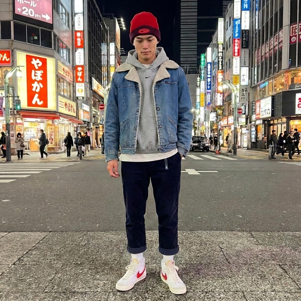 掲載されている着画はAIによるスタイリングイメージです。「この服が一番カッコよく見える瞬間」を表現しています。 正確な色味やディテールは、実物写真(無加工)を必ずご確認ください。