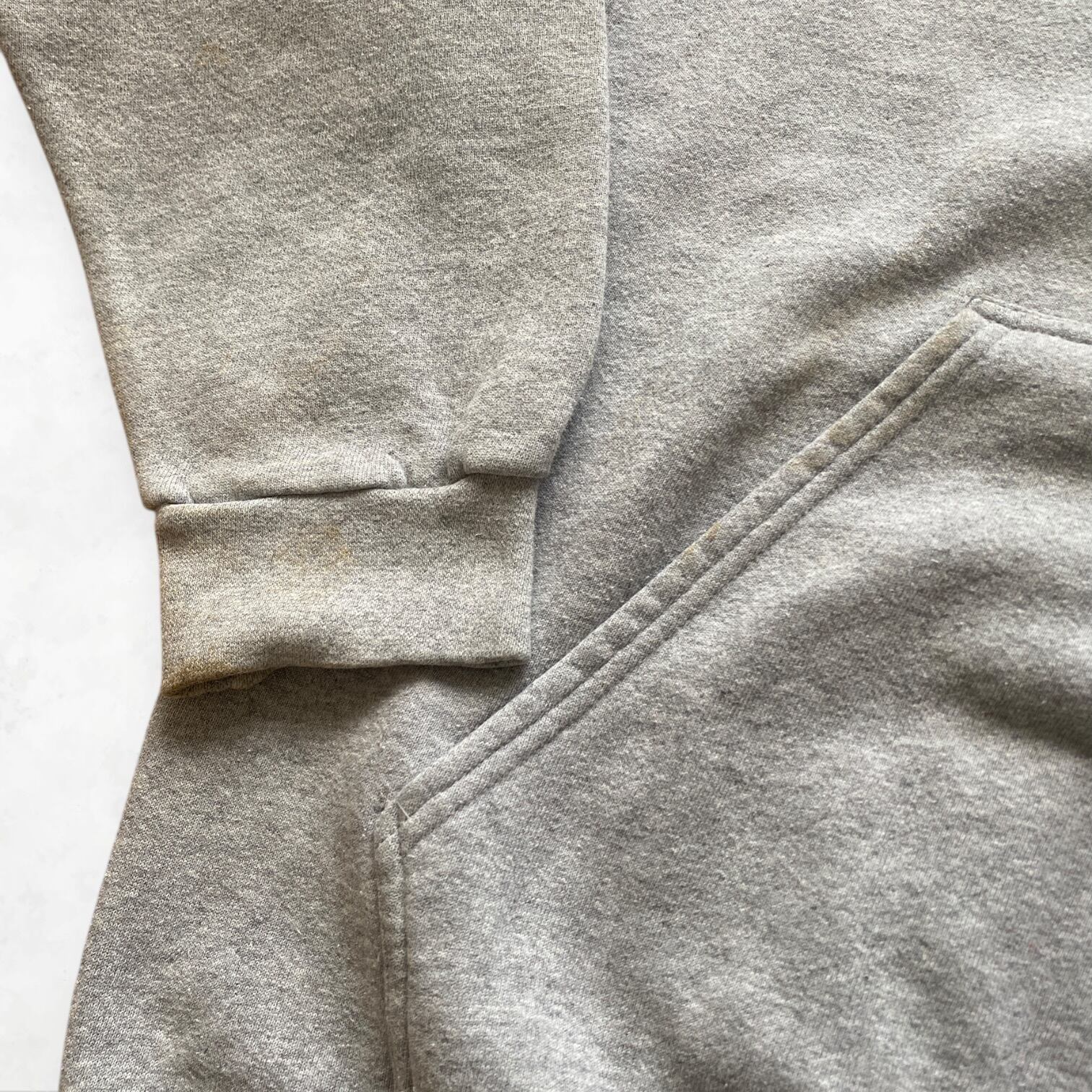 昨今のヴィンテージ市場でも絶大な人気を誇る、センターロゴ(通称:センタースウッシュ)のNIKEフーディ。90年代のアメリカ製らしい、ガシッとした肉厚な質感と、計算されたルーズなシルエットが魅力です。シンプルだからこそ、素材と形の良さが際立つ一着。何年経っても廃れない定番だからこそ、手に取る価値があると思います。