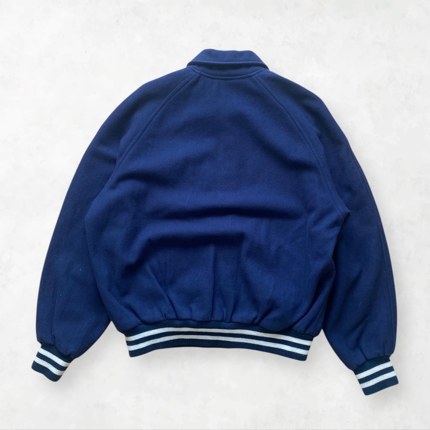 [Heavy Melton] Powers Varsity Jacket / Navy & White