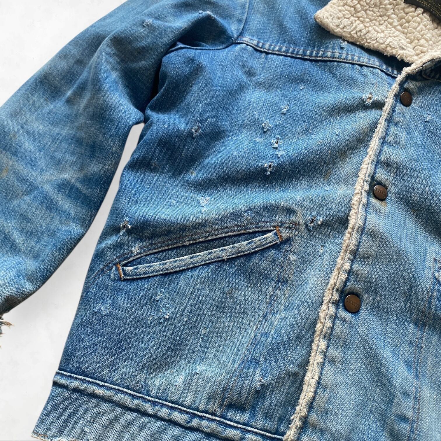 Point: ラングラーの兄弟ブランドとして知られるマーベリック。当時の無骨な作りと、ボアの温かみが共存した名作です。ダメージを「味」として昇華できる、玄人好みのヴィンテージ・ピース。