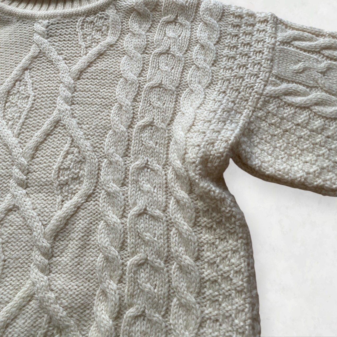「スコットランド製の本格ケーブル編み、この立体感と素材感に一目惚れして仕入れました。」