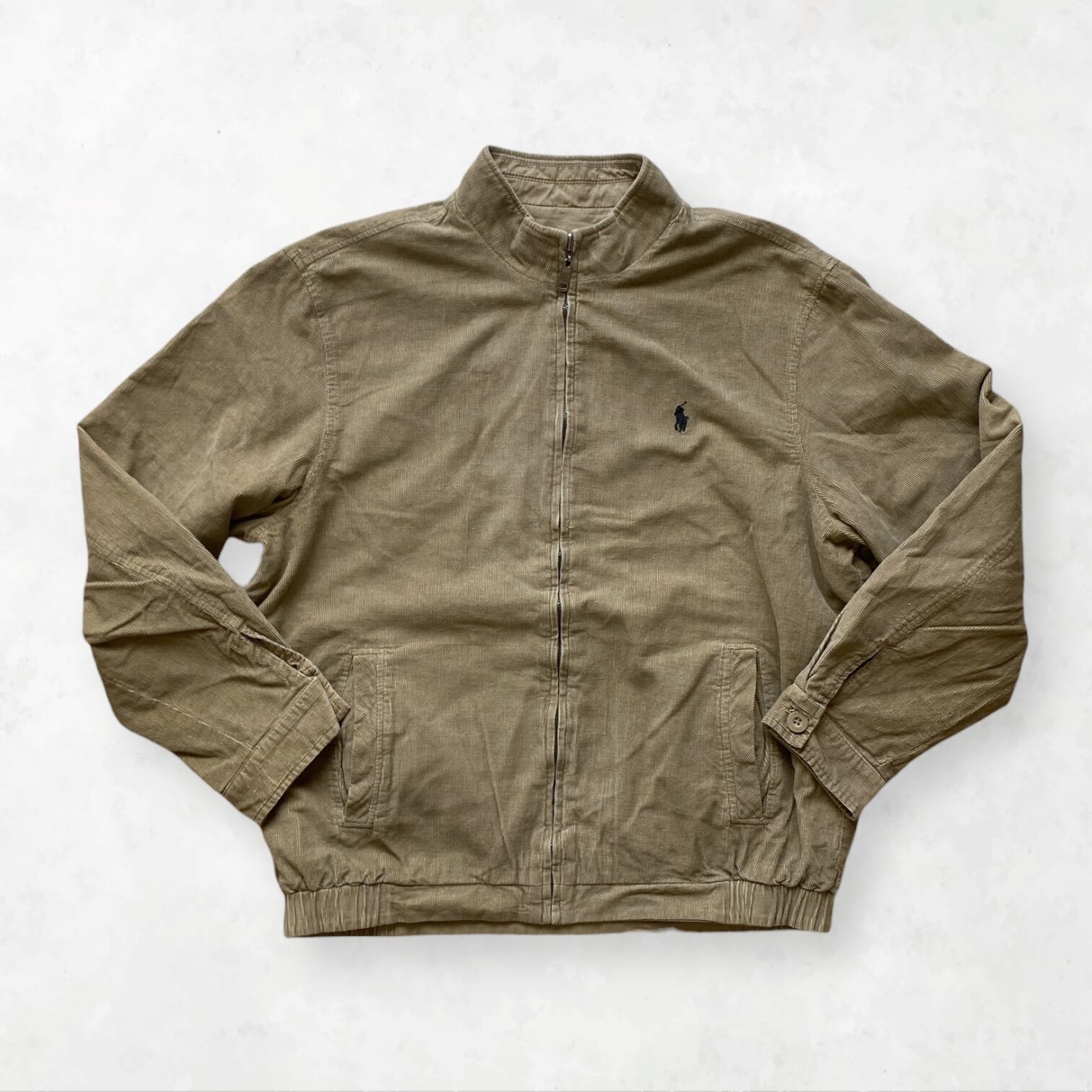 90年代ラルフローレンのアーカイブ。温かみのあるコーデュロイ面と、クリーンなコットン面を同色で仕上げた、非常に洗練されたリバーシブルジャケットです。同色異素材という絶妙なバランス感に惹かれて選んだ一着で、素材の質感を使い分けることで、その日のVibeに合わせた最適なスタイリングを完成させます。