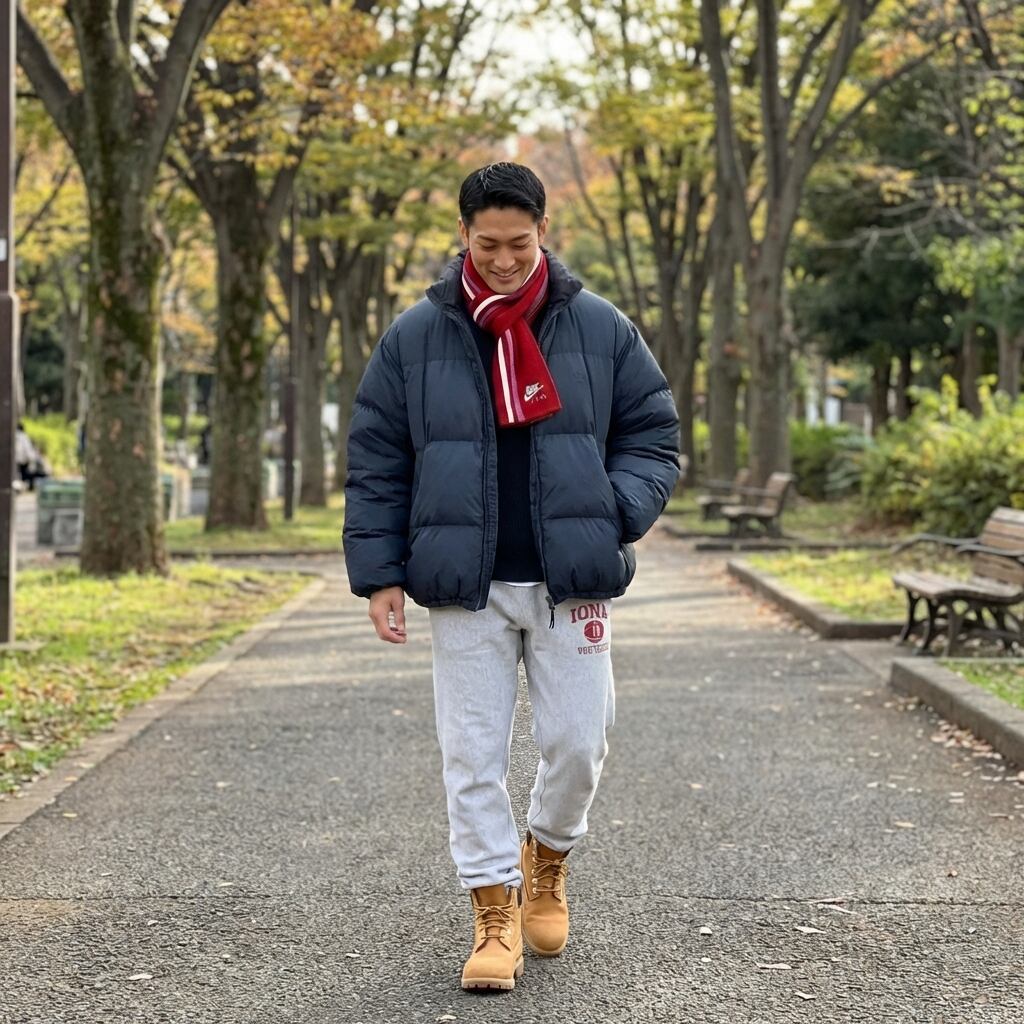 「目利きが惚れた、ナイキの赤い衝撃。レトロスポーツの血が騒ぐマフラー。」