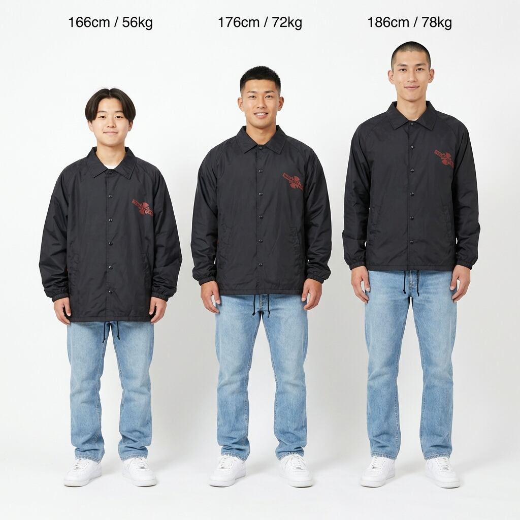 Fitting: 170cm前後(程よいゆとりのあるリラックスシルエット)〜 180cm(ジャストで着こなすソリッドなスケータースタイル)