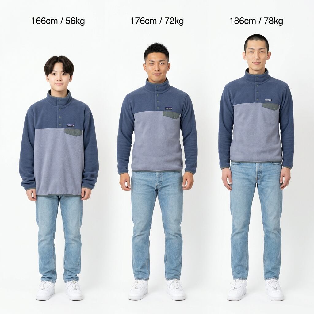 Fitting: 160cm前後(ゆったりとしたルーズシルエット)〜 170cm前後(ジャストで着こなすクリーンなアウトドアスタイル)