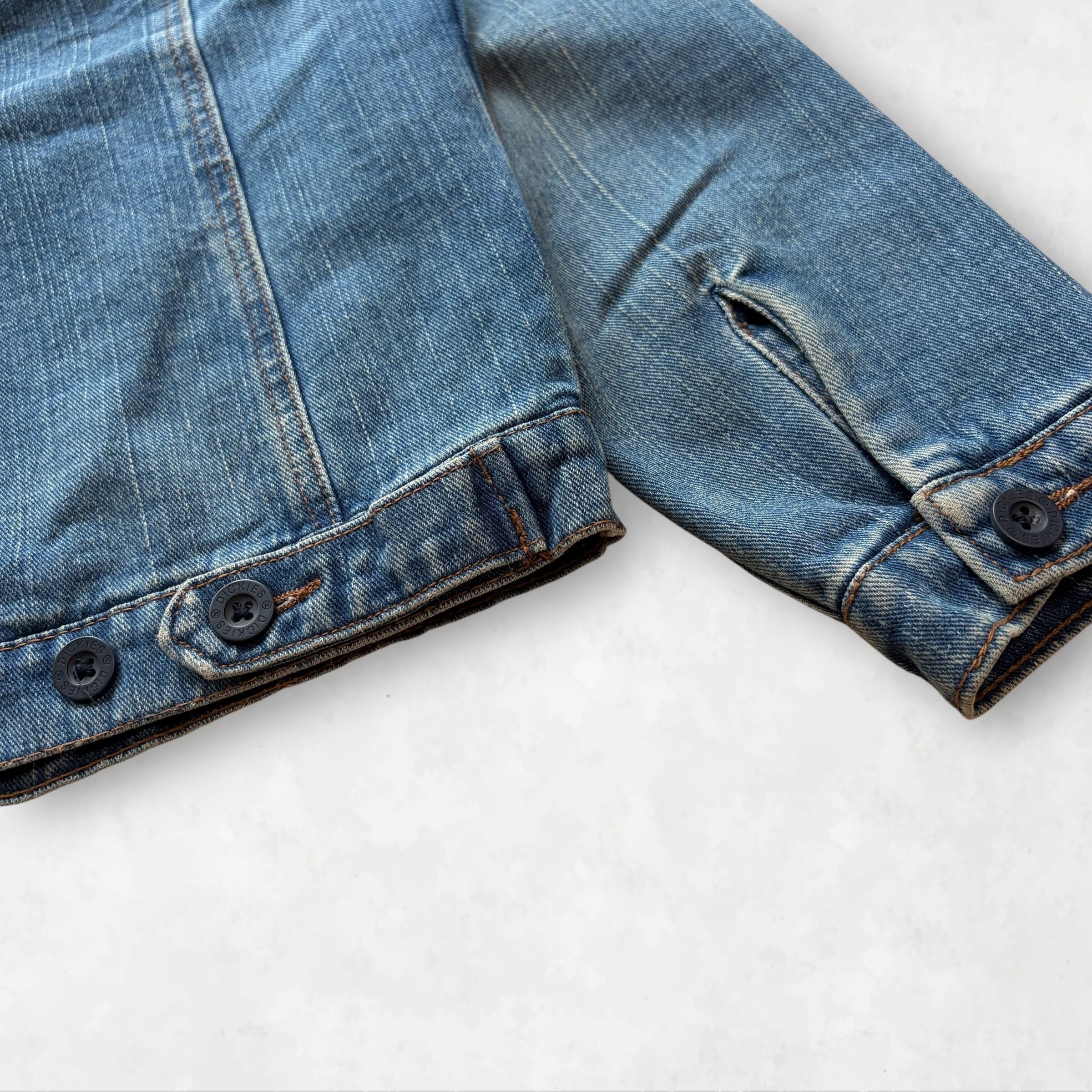Memo: 古着らしい風合いはありますが、着用に支障のあるダメージはありません。全体的な縦糸の色落ちが本当にきれいで、この「育った」感じが出るまで何年かかったんだろうって思わせる一着。ヴィンテージさながらの味わいをすぐに楽しめるコンディションです。