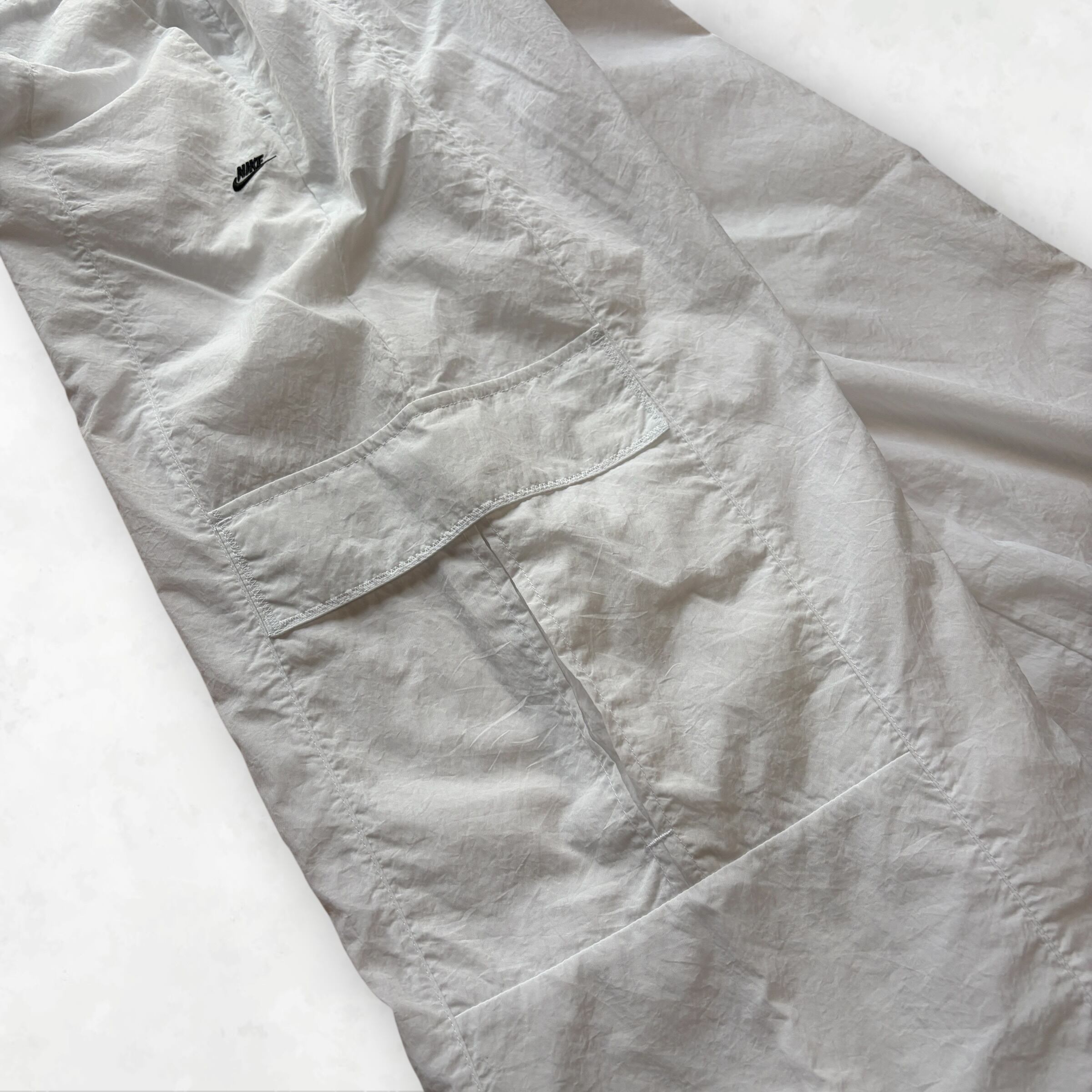 00年代ナイキのカーゴパンツ。クリーンなホワイトボディに、ストリートの「今」を凝縮したテックディテールが光る一着です。このシンプルながら機能的な作りに惹かれて、迷わず仕入れました。女子がルーズに、かつ都会的に履きこなせる、まさに主役級のボトムス。