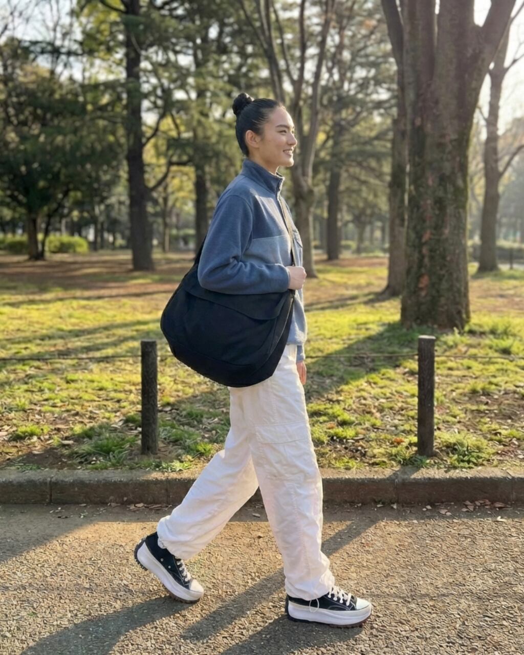 Fitting: 155cm前後(裾を絞ってボトムにボリュームを出す旬なスタイル)〜 170cm前後(フルレングスで履きこなすクリーンなストリートスタイル)