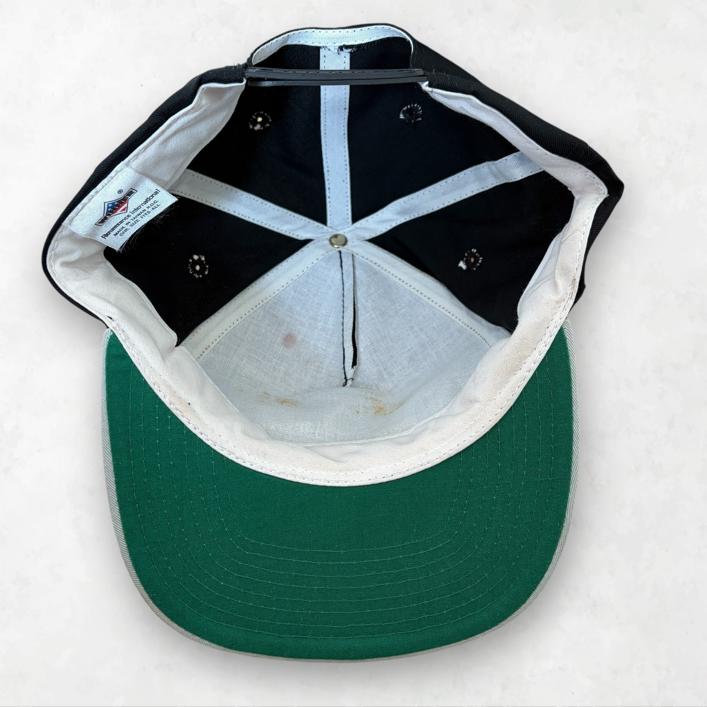 Point: 当時らしい5パネル構造と、フラットなバイザー。そして何より、バイザー裏がグリーンの「緑ツバ」仕様なのが、オールドスクールな雰囲気を格上げしています。ストリートスタイルにはもちろん、あえてクリーンな格好の外しとして使うのも最高にクール。