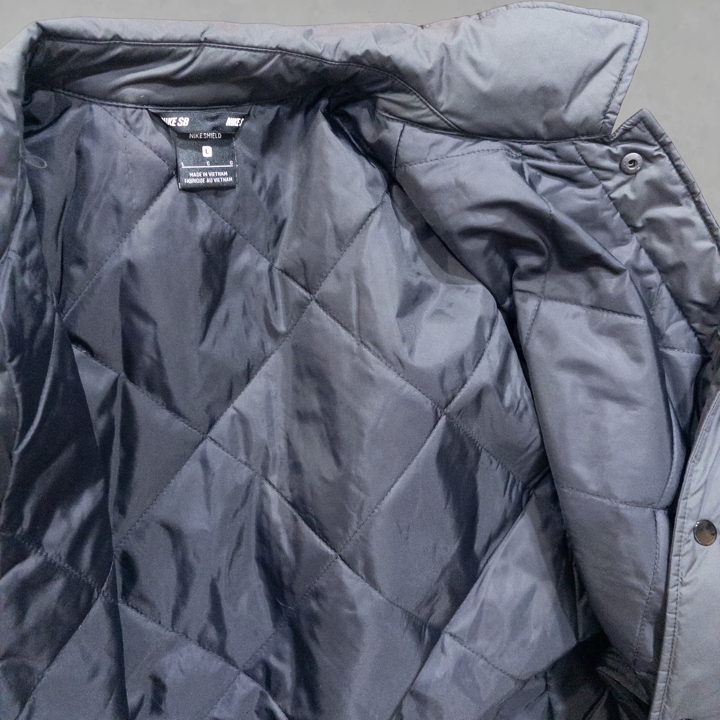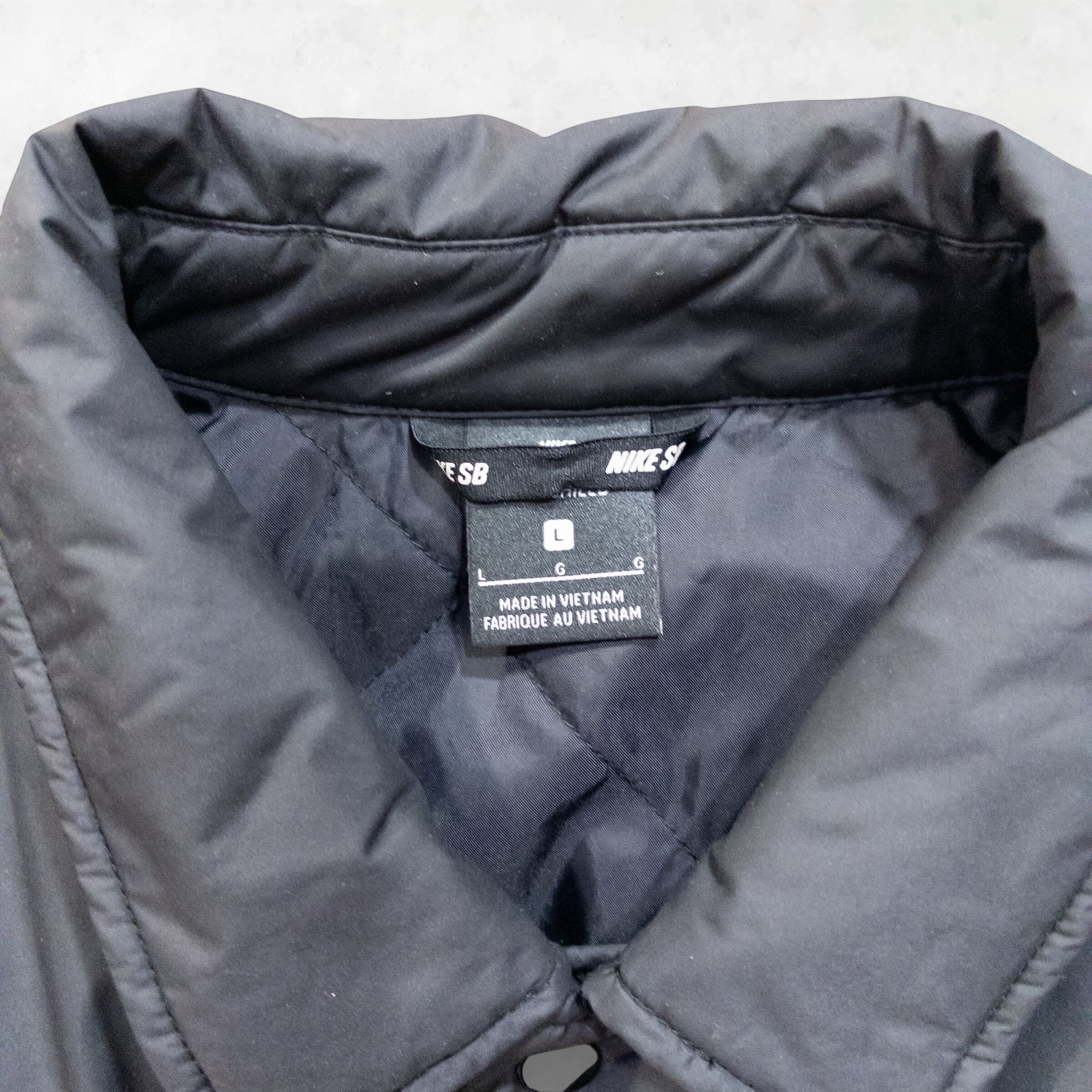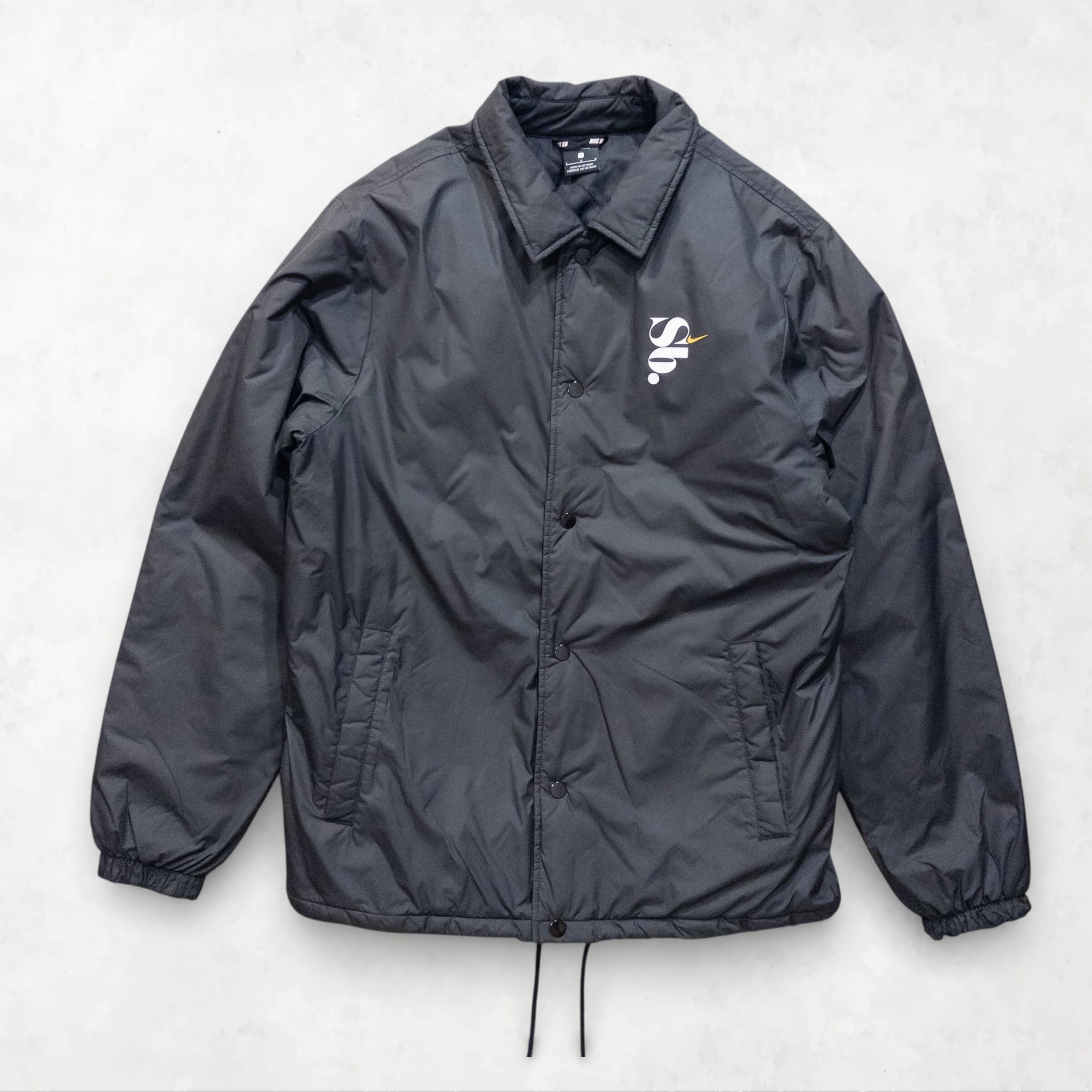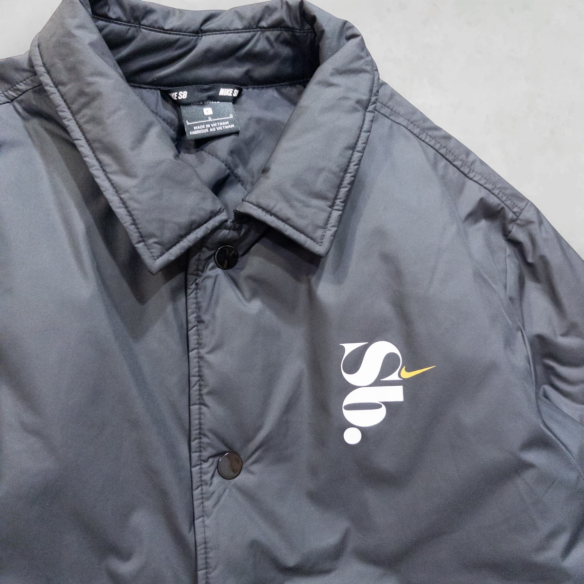 Point: 胸元に配されたアイコニックなロゴ刺繍。裏地は薄手のキルティング仕様になっており、コーチジャケット特有の「安っぽさ」を一切感じさせない重厚な作りが魅力です。ボタン一つ一つの質感に至るまで、NIKE SBらしいこだわりが詰まった一着。