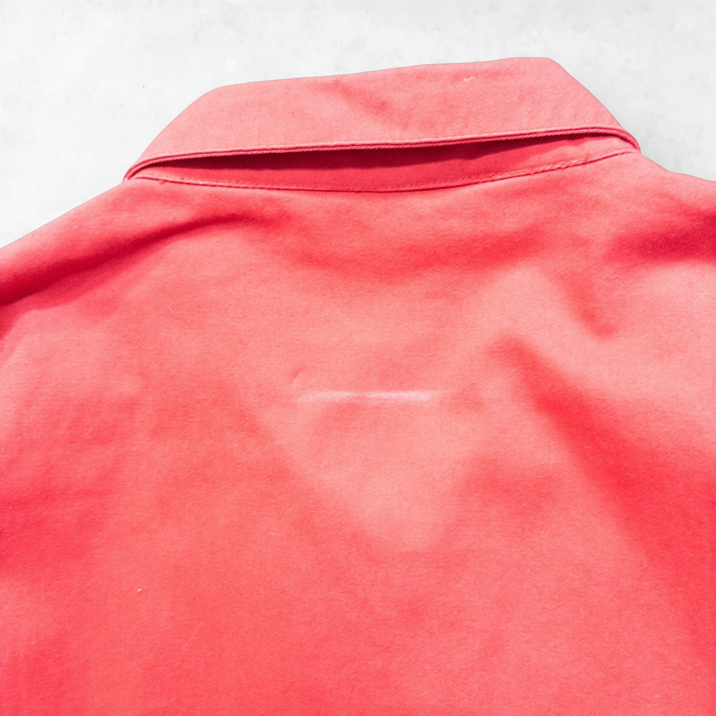 Memo: 背面(襟元下付近)に微細なスレ跡(画像参照)がありますが、ボディの発色を損なうほどではなく、ヴィンテージに慣れている方であれば「風合い」として納得いただけるレベルです。全体的に適度な使用感はありますが、生地のハリも残っており、これからも長く愛用いただける良好な状態です。