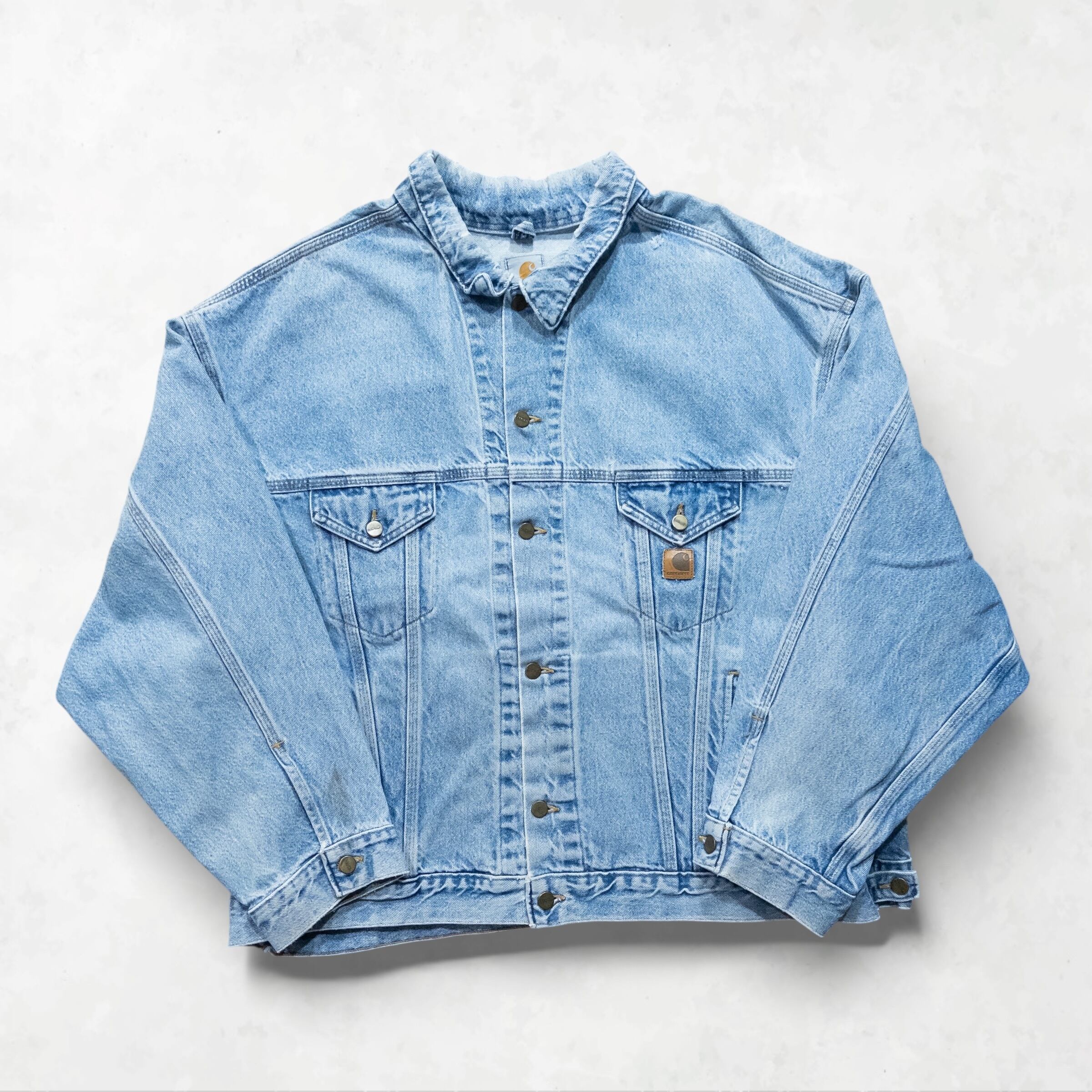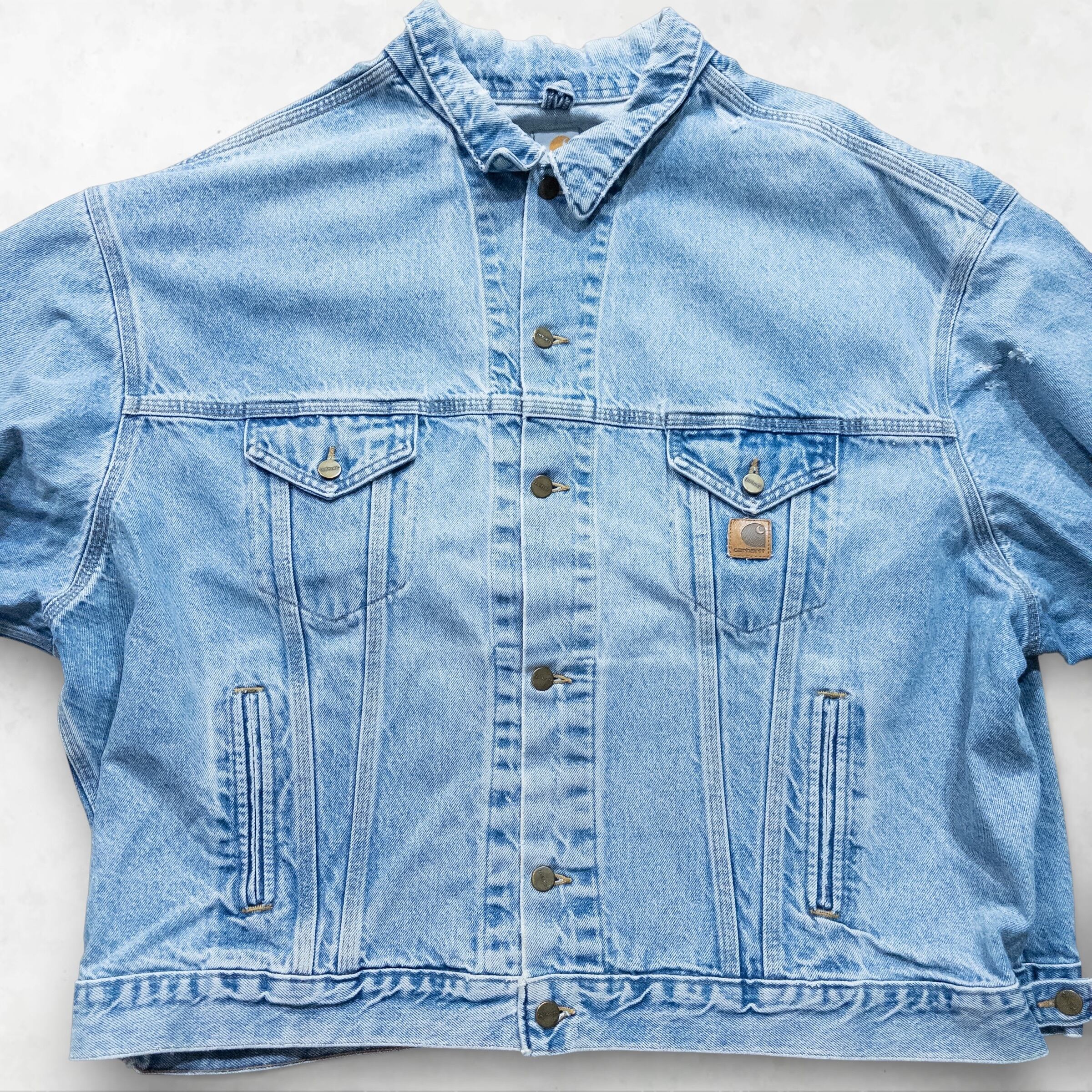 [Workwear Archive] 90s Carhartt Mega-Box Denim Jacket / Ice Blue & Distressed