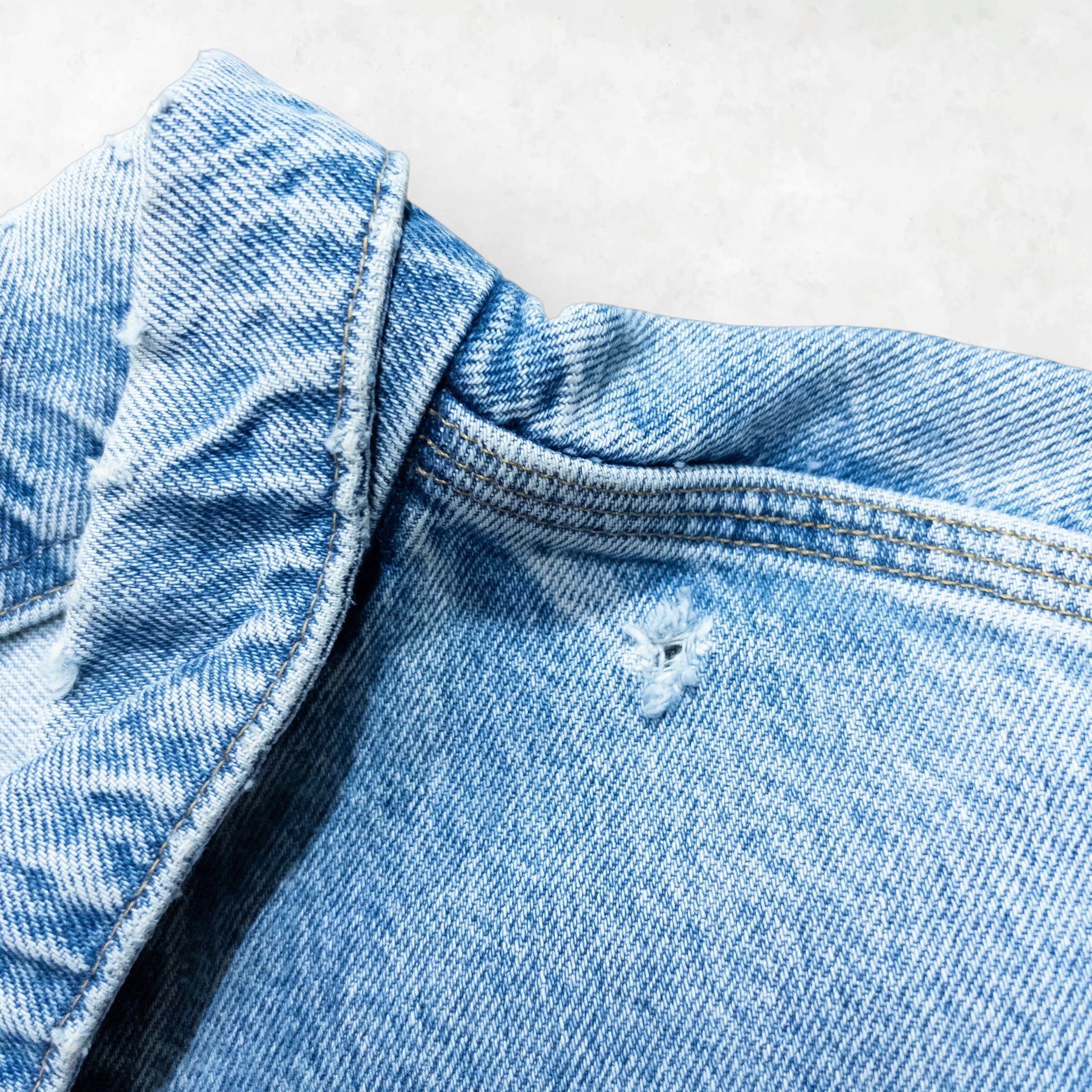 「規格外のビッグシルエットが生む、圧倒的な重厚感。アイスブルーの海に刻まれた、美しきダメージの軌跡。」