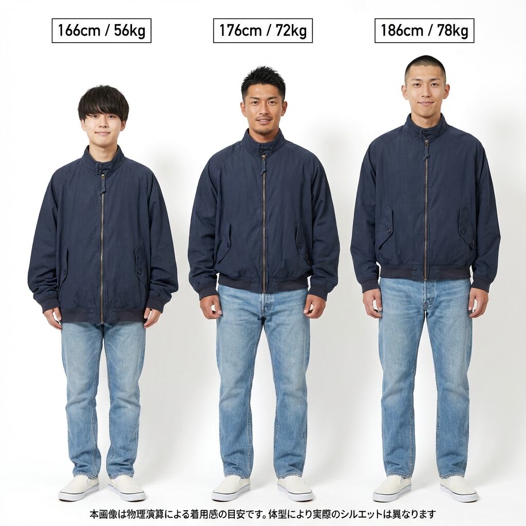 Fitting: 175cm 〜 185cm(ゆったりと羽織るオーセンティックなスタイル) / 170cm前後(肩の落ち感を活かしたルーズな着こなし)