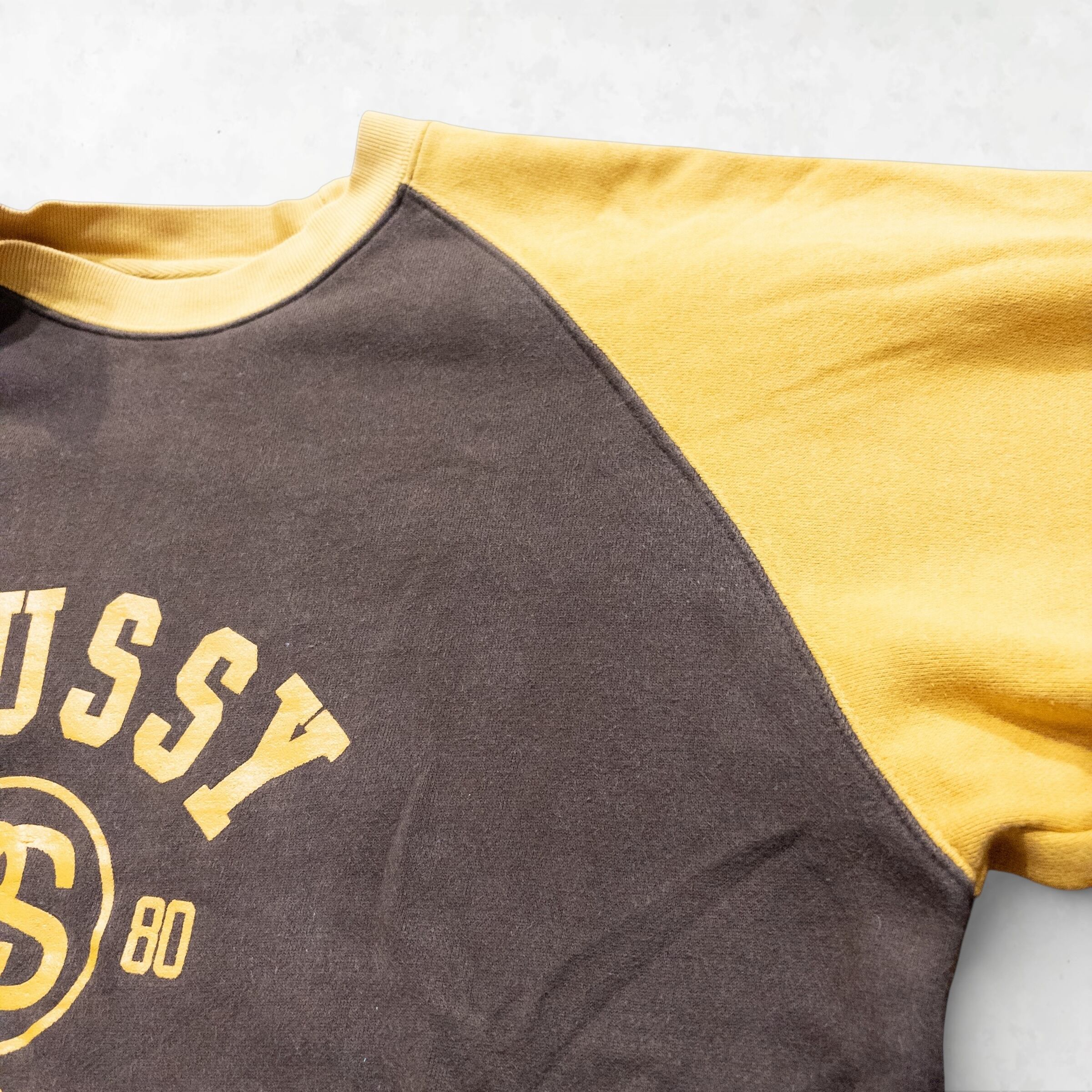 [Street Archive] 90s Stussy Logo Raglan Sweatshirt / Brown & Yellow