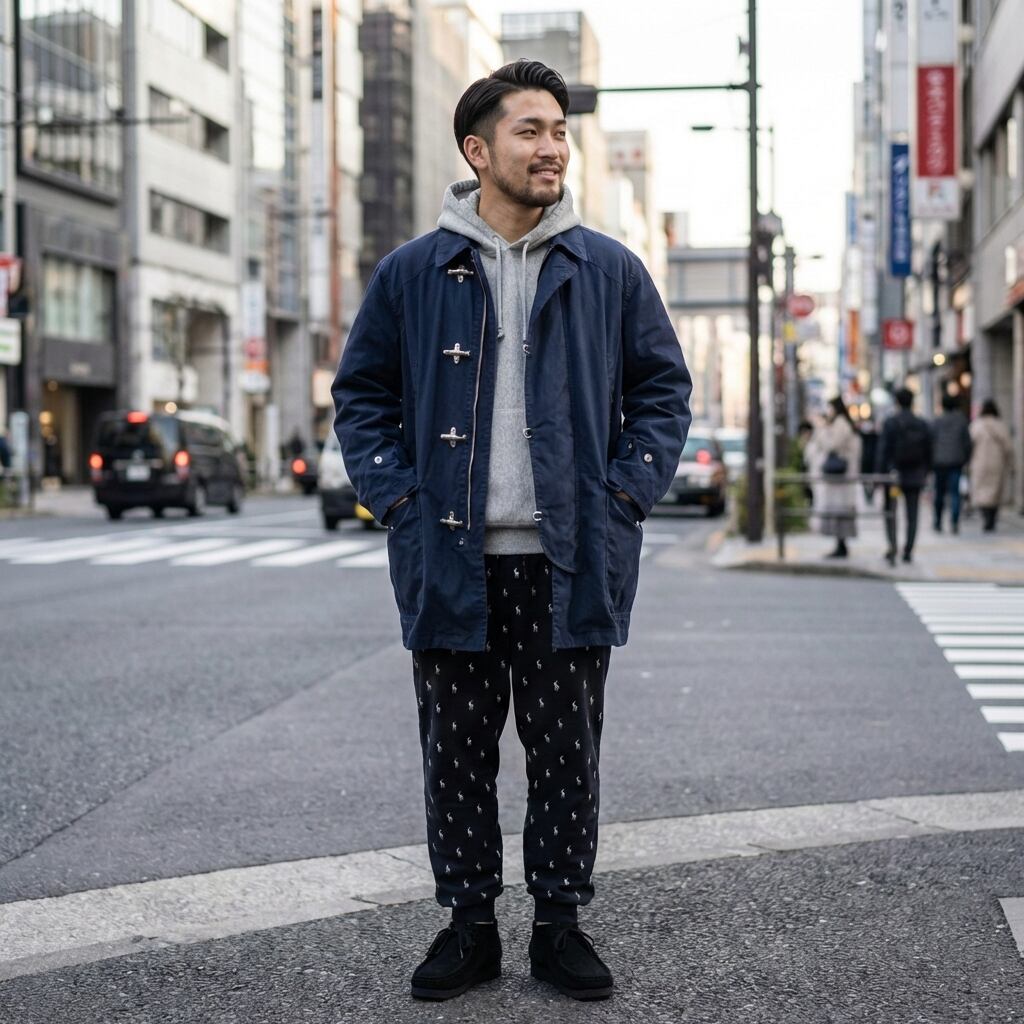 Polo Ralph Laurenの代名詞、ポニーの総柄が踊るパジャマパンツです。本来は家の中で過ごすための贅沢品を、あえて街着としてハズしに使う。この「余裕」こそが、今のストリートにおける究極の洒落っ気です。ブラックボディにポニーが映えるこの個体なら、シャツやジャケットと合わせた時の「違和感」が最高にクールなアクセントになります。